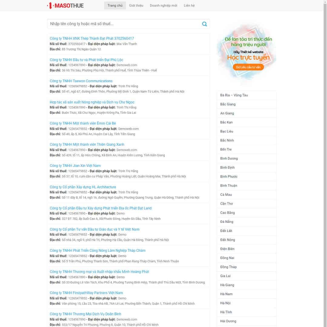 Mẫu Giao Diện tra cứu mã số thuế giống ( thongtincongty.com )
